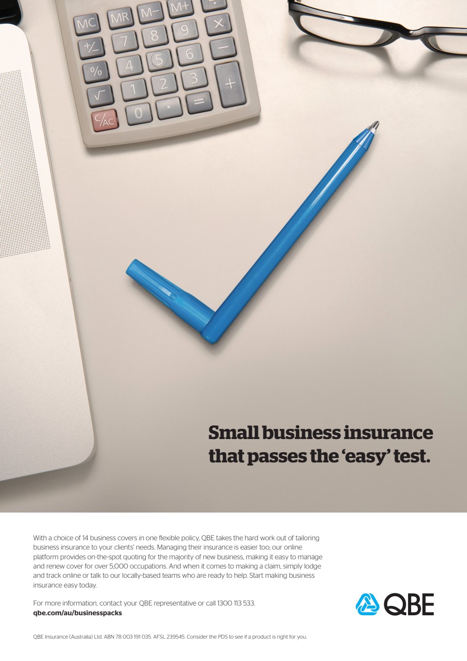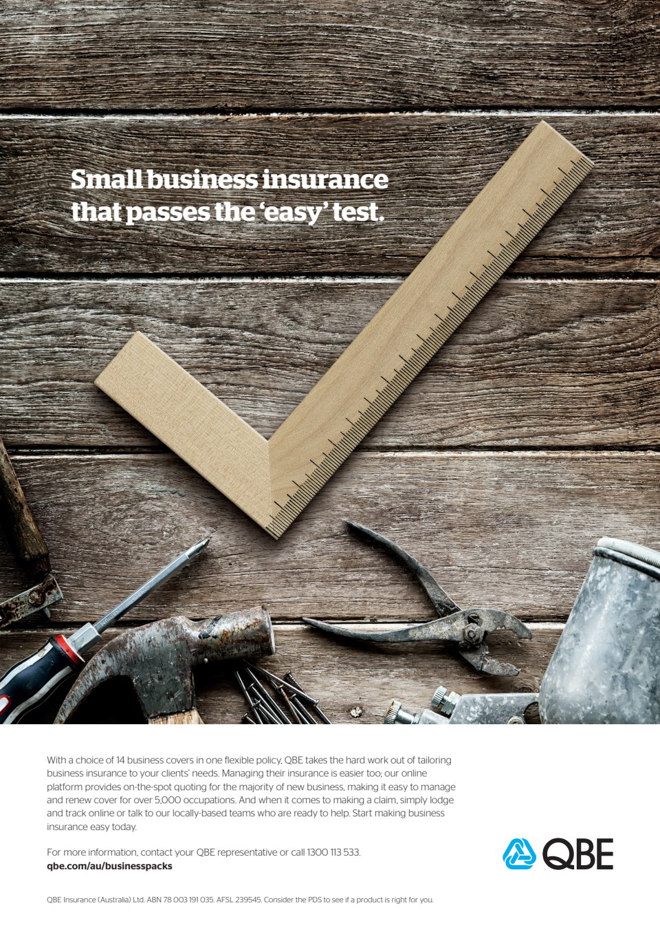 Business insurance is notoriously complicated. Working with the team at The Core Agency, I developed this campaign, targeted at insurance brokers, to show how much easier it can be with QBE. Using a key visual of a ‘tick’ created with various objects that are relevant to specific business sectors, the campaign is based on the theme: ‘Small business insurance that passes the 'easy’ test. It appeared in insurance industry trade press, on LinkedIn and Facebook.
