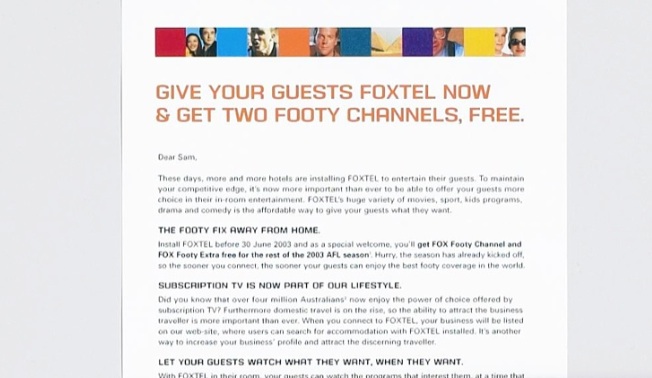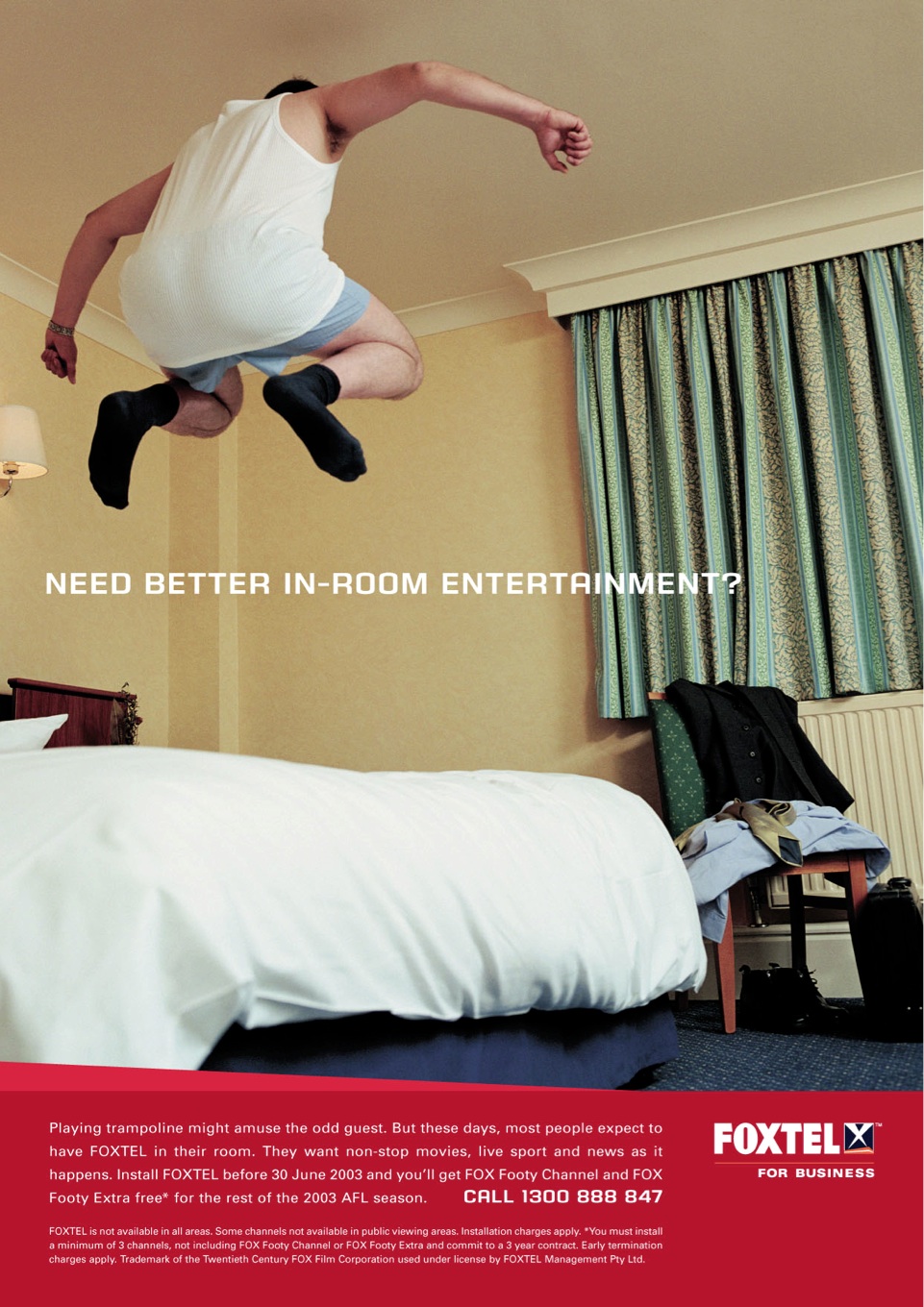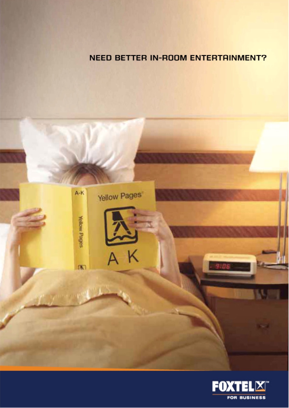 Foxtel wanted to persuade more hotels to install cable TV in their hotel rooms as a way of attracting more guests and growing their business. We created this DM pack which dramatised the other ways hotel guests might entertain themselves if they don’t have access to Foxtel. It won Bronze at ADMA.
